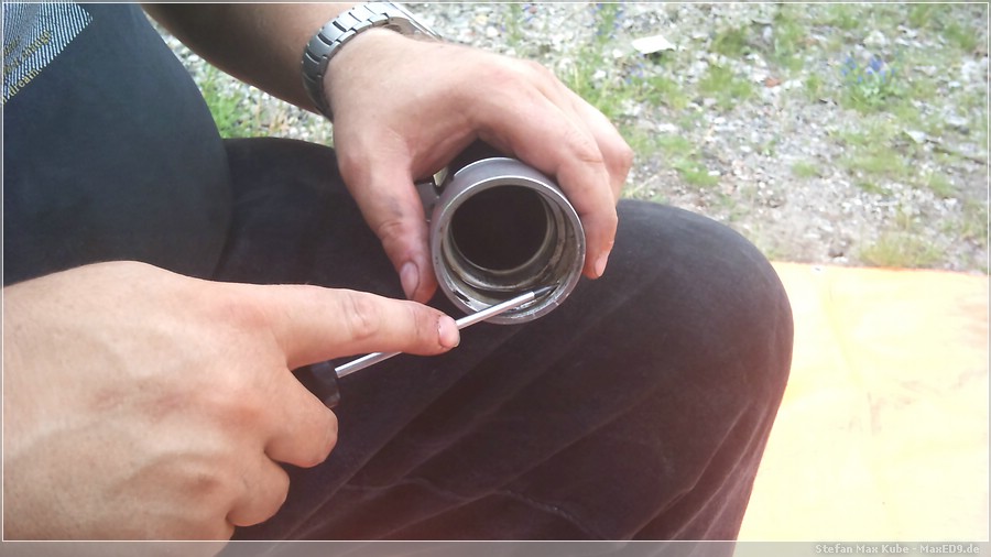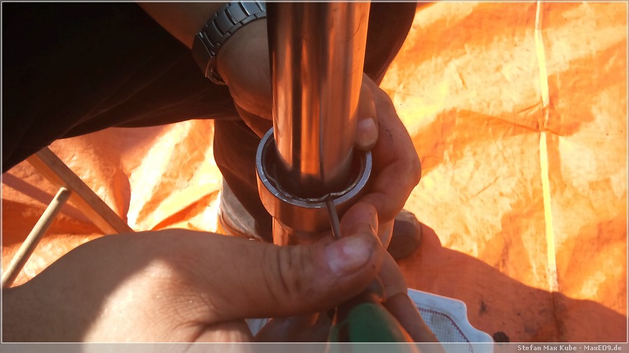 Diesmal ging das Eintreiben des Dichtringes deutlich leichter, die Kreuzschlagtechnik ist wesentlich einfacher, als sich erst ein Werkzeug zu basteln, welches dann doch nicht so richtig funktioniert, wie beim letzten Mal. Dadurch war natürlich die ganze Geschichte deutlich entspannter durchzuführen.