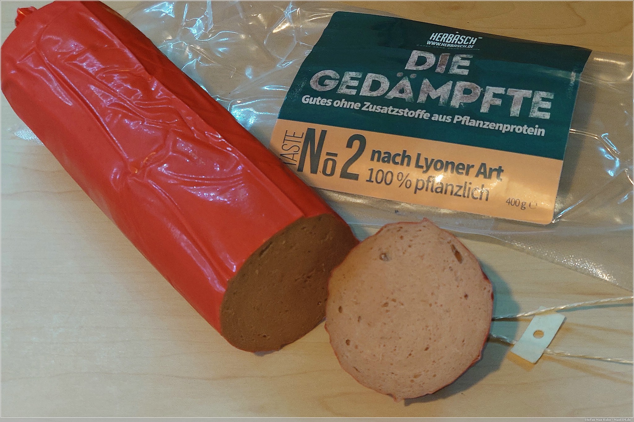 Viele vegane Wurstalternativen nach Lyoner Art haben die Eigenschaft bei Hitze sehr weich zu werden. Die Gedämpfte von Herbasch blieb standhaft und am Ende schmeckte es wie aus der Erinnerung.