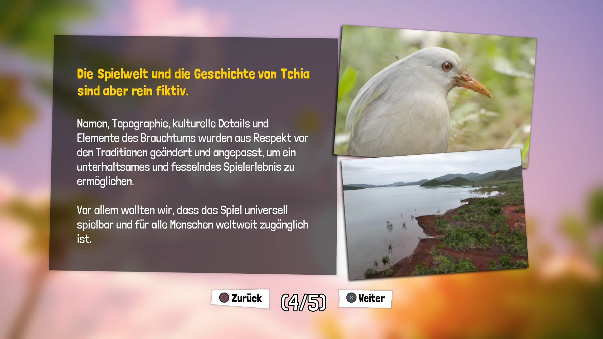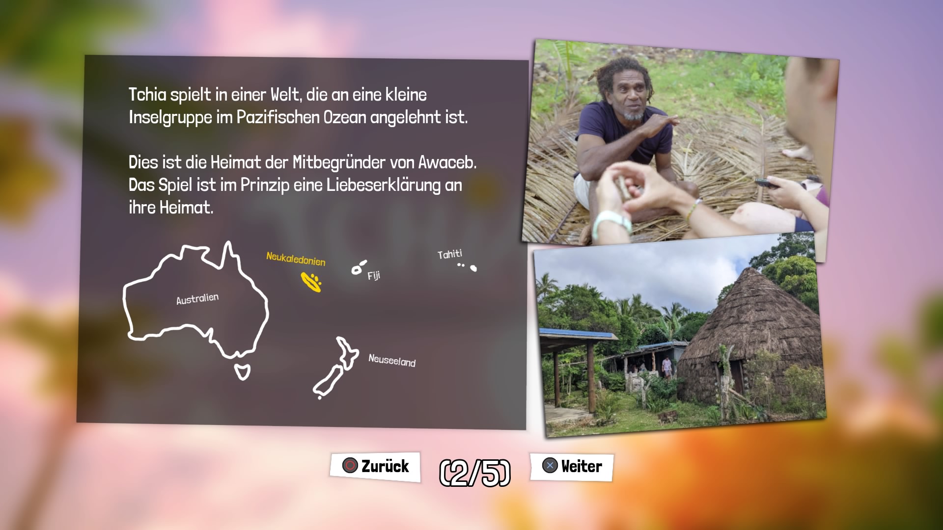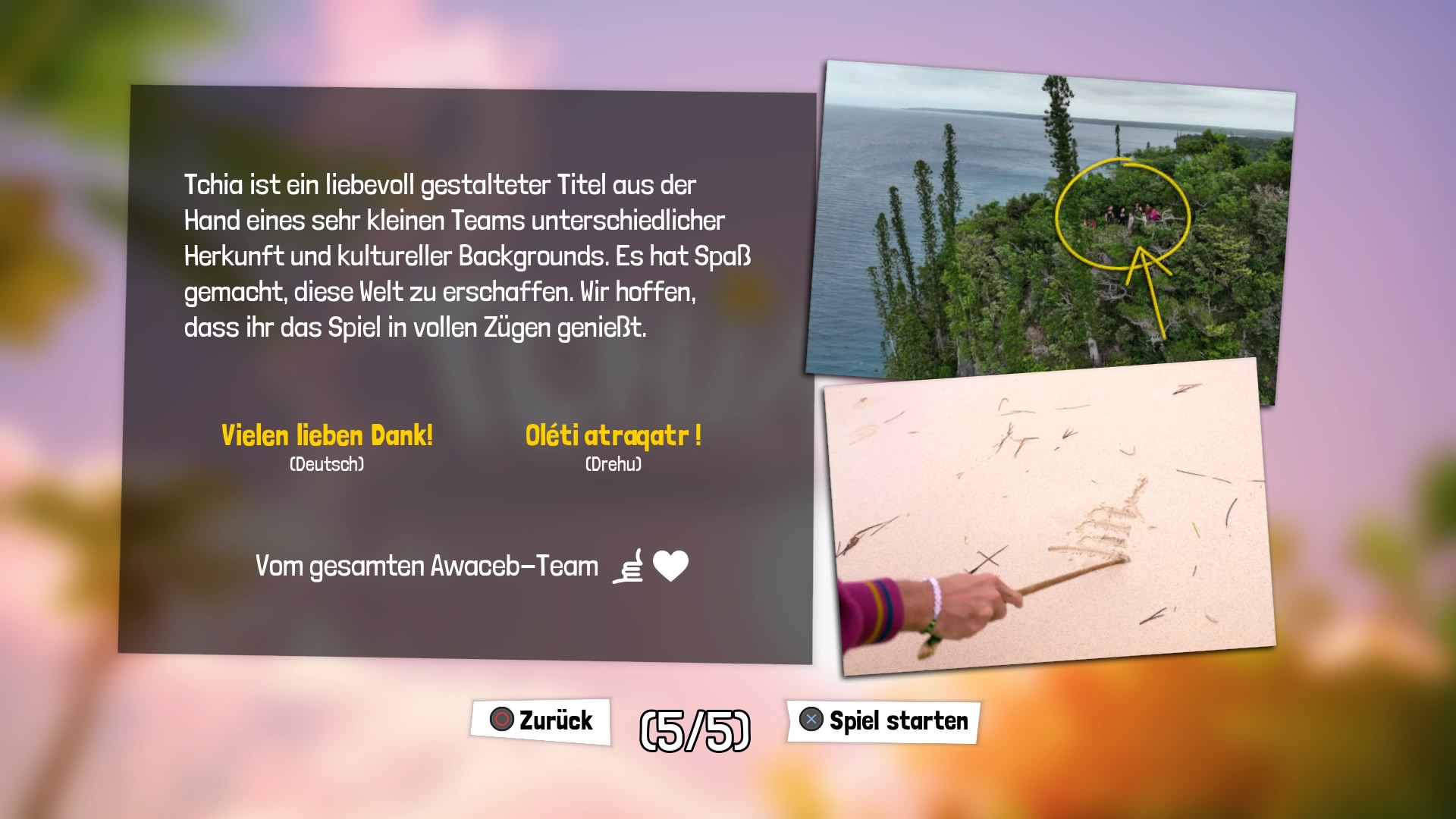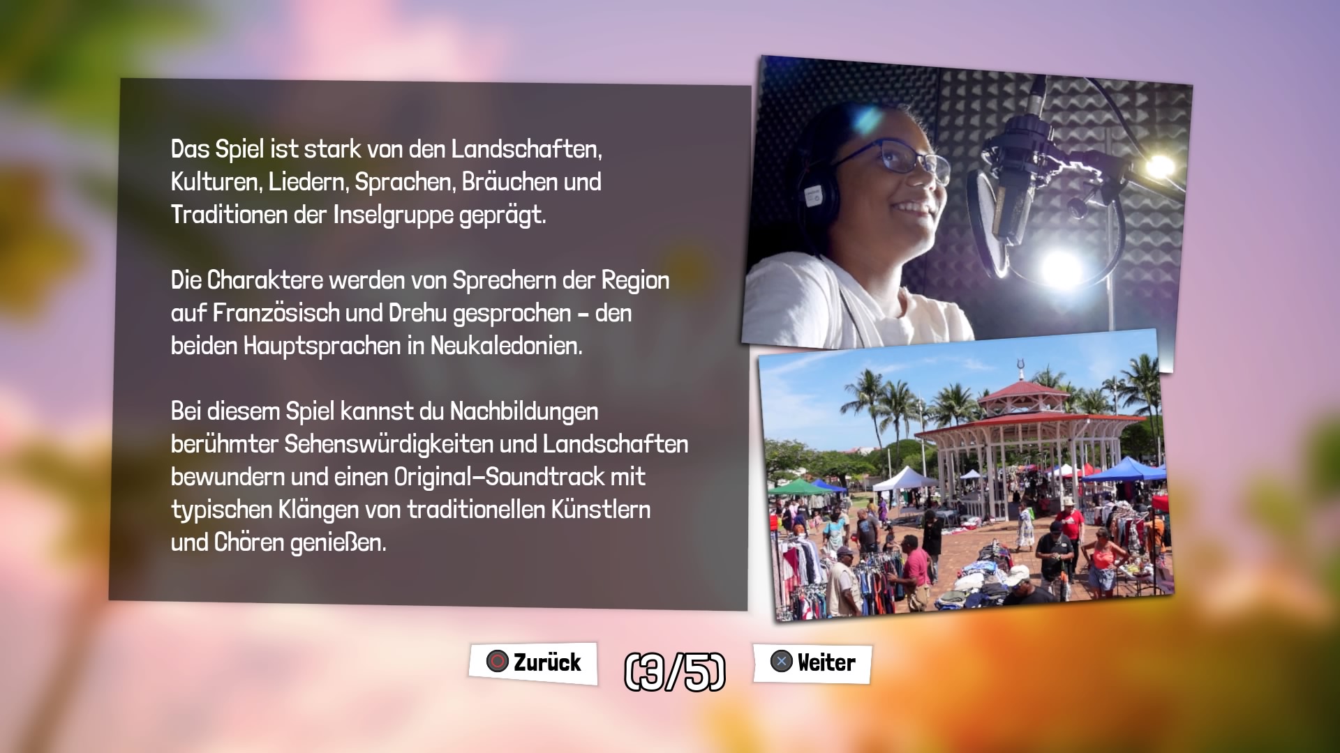 Die Audioausgabe erfolgt auf Französisch und Drehu, eine Sprache welche u.a. auf Neukaledonien gesprochen wird, Untertitel sind selbstverständlich auch auf Deutsch verfügbar. Das verleiht dem Spiel zusätzlichen Charme.