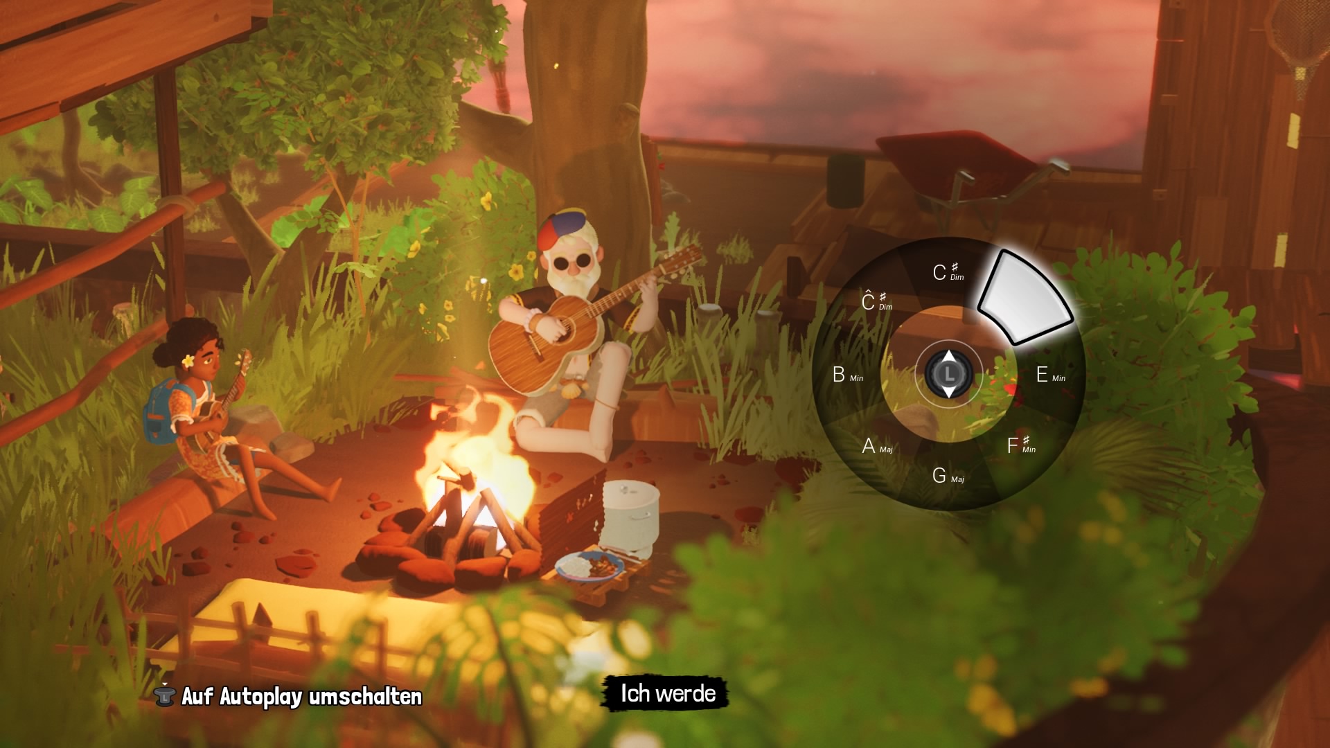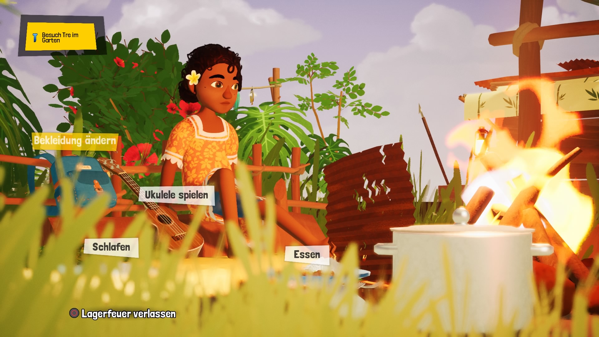 An Lagerfeuern kann man sich ausruhen, essen, musizieren und auch den Charakter mit den im Spiel freigeschalteten Gegenständen anpassen.
