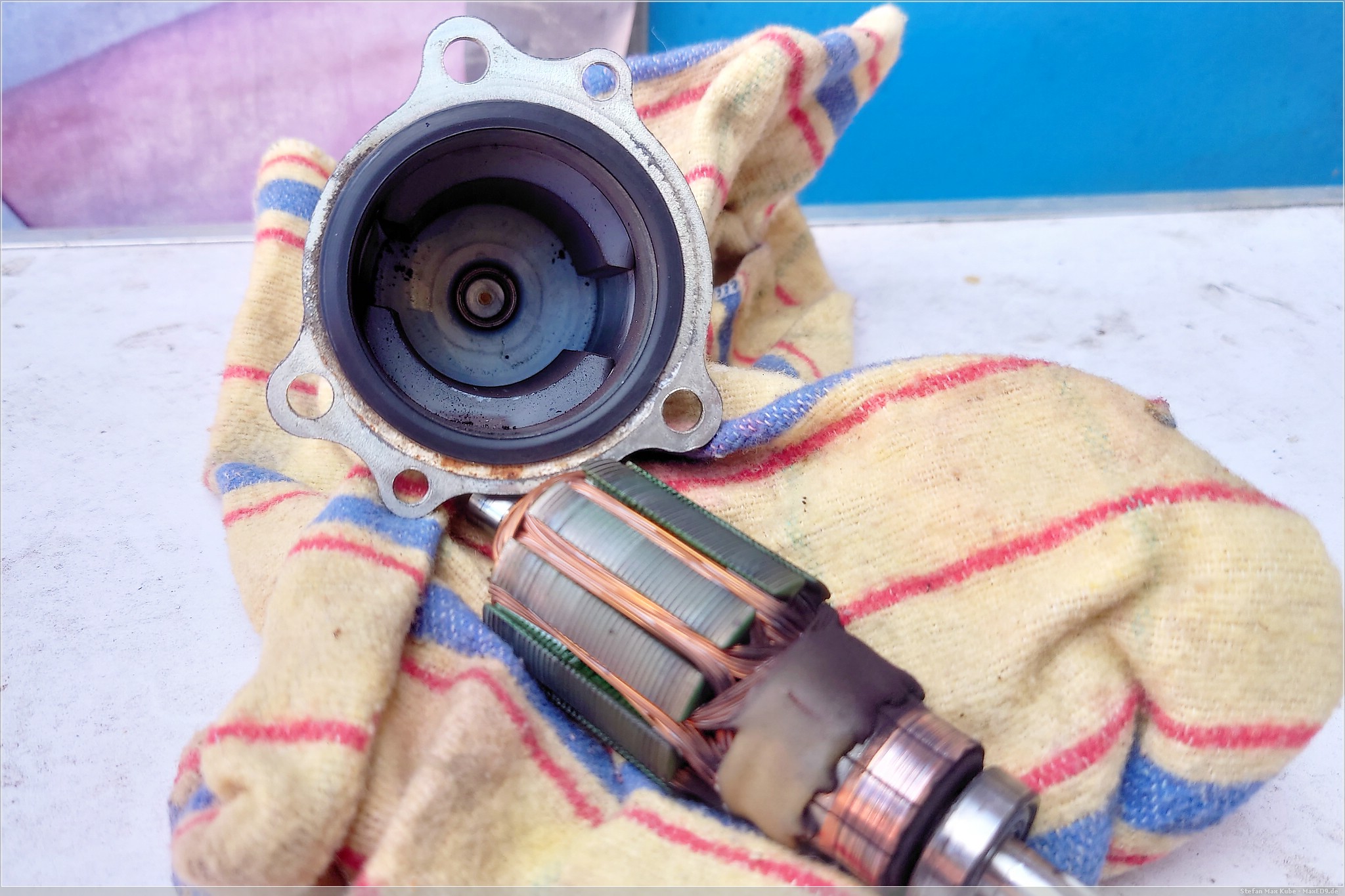 Das Gehäuse und den Anker vom Kohlenstaub befreien, reinigen und auf Beschädigungen prüfen. Zum Reinigen ist Druckluft praktisch, aber eine elektrische Luftpumpe tut es auch.